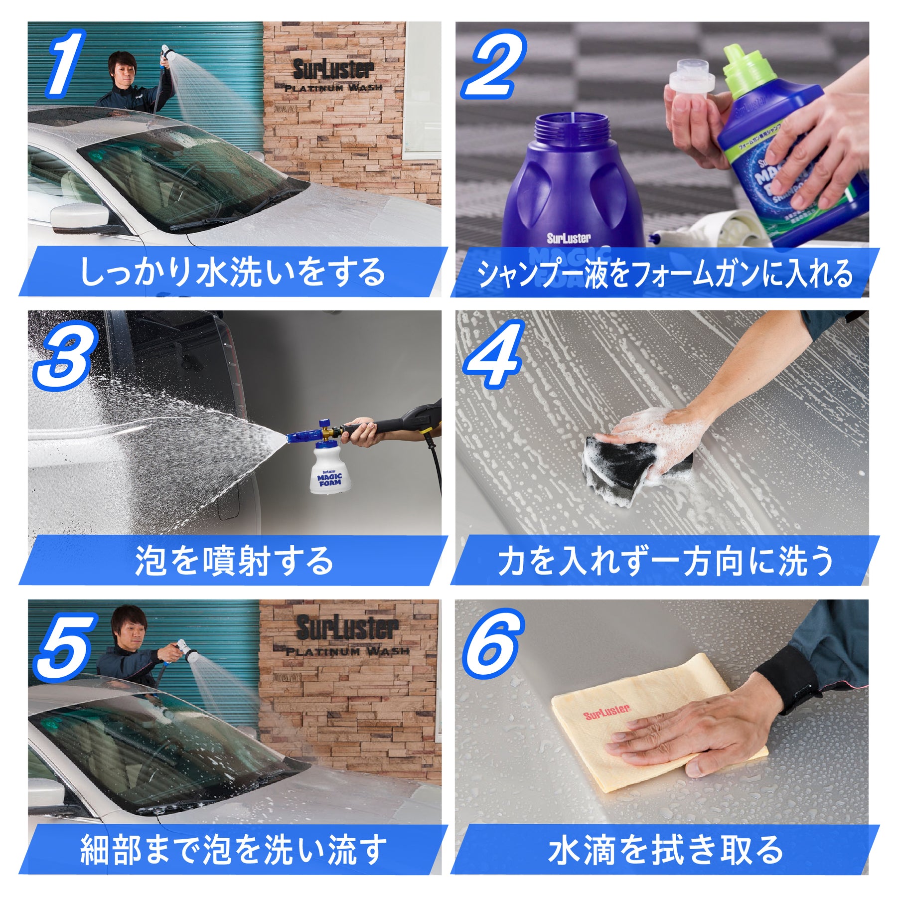 「シュアラスター マジックフォームシリーズ」のフォームガンと組み合わせることで、より効果的な洗車が実現できます。