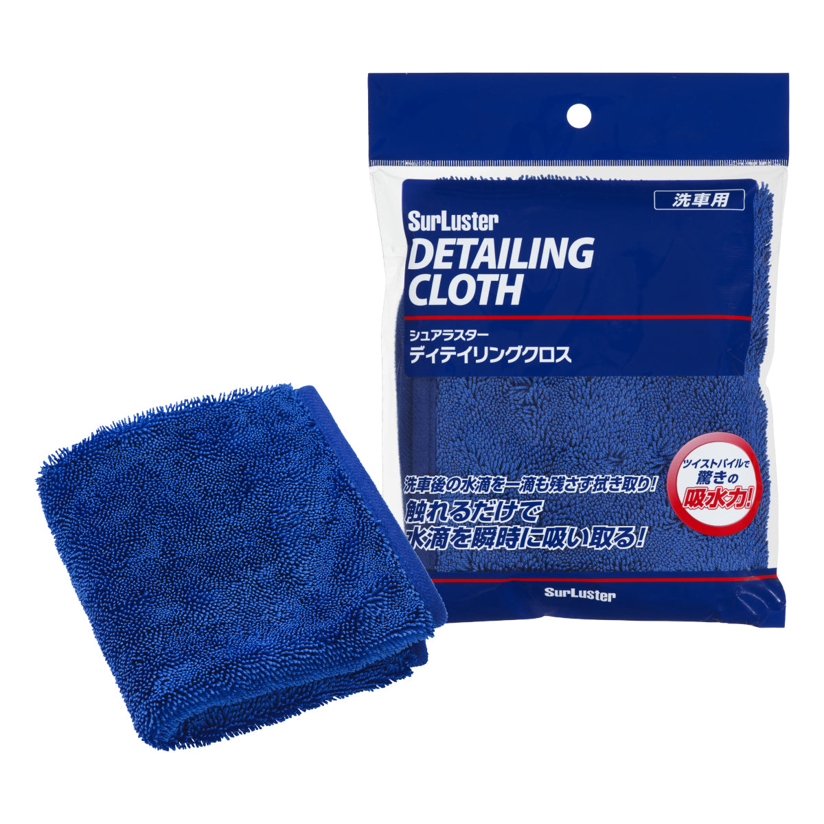 粗拭き後、水滴が残りやすいボディの細部(ミラー下・エンブレムまわり・グリルの隙間など)に毛足の長い面を当てて、水滴を吸わせるように拭き取ります。