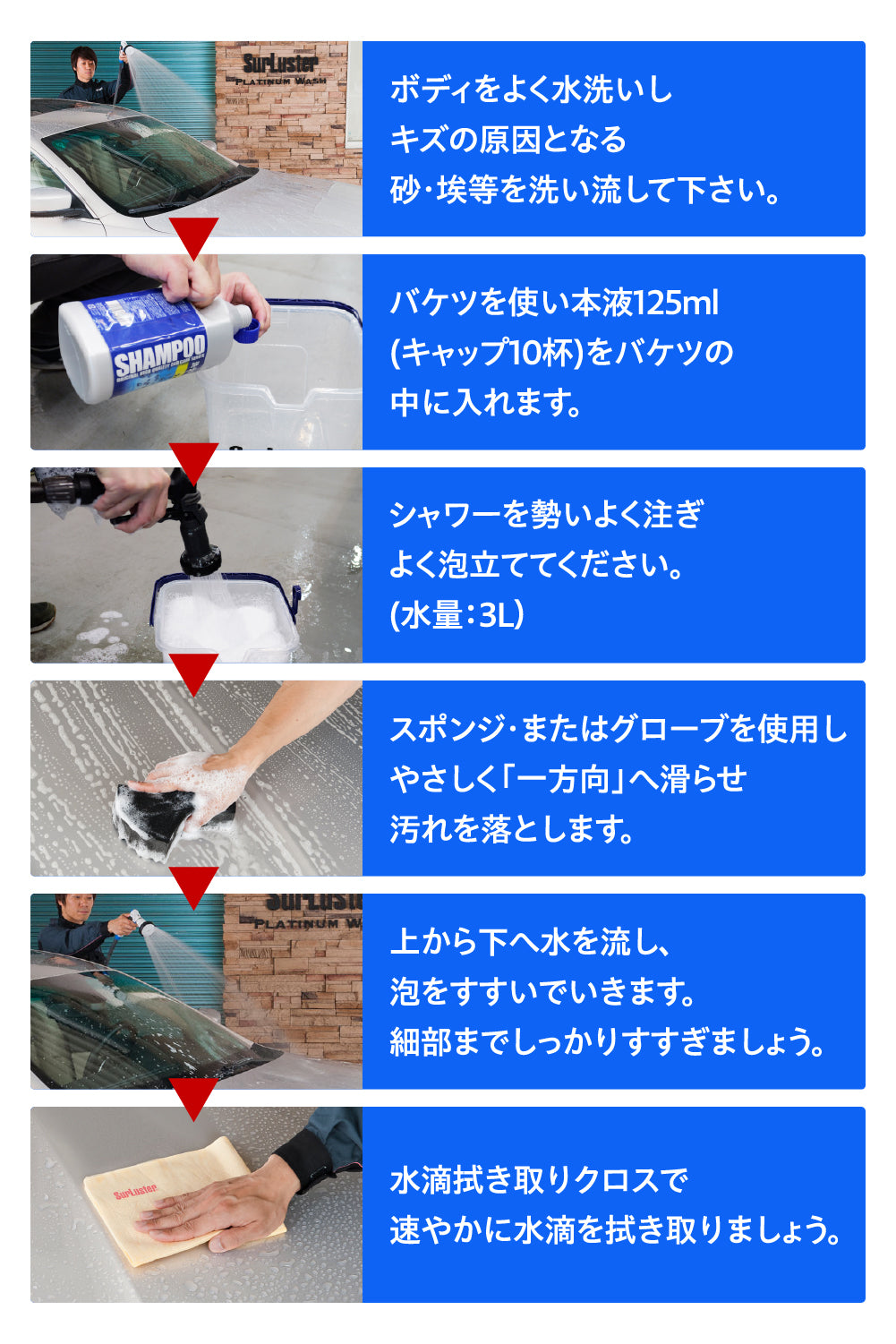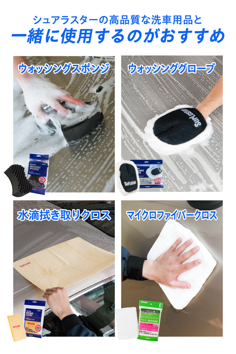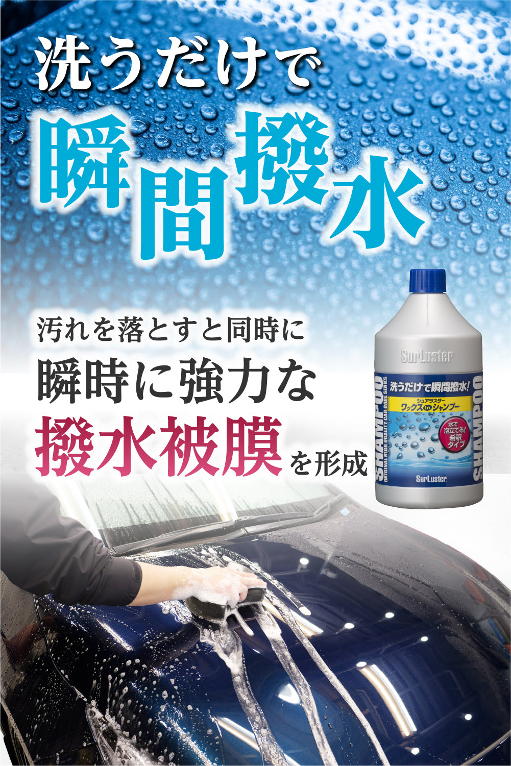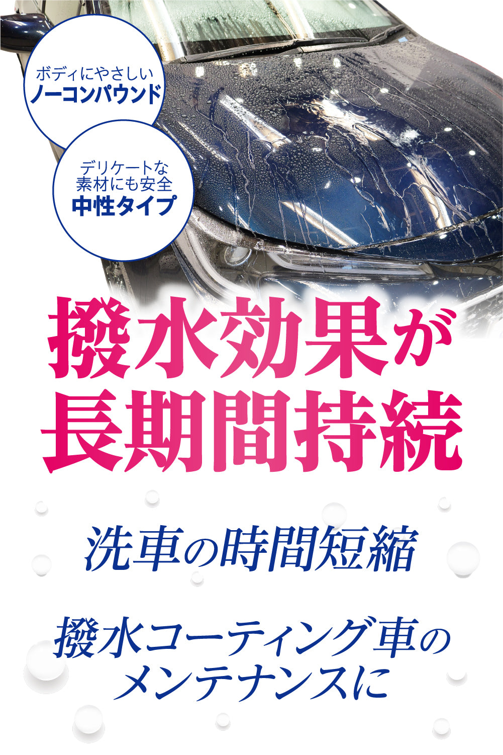 シャンプーの泡を流しはじめた瞬間からボディにほとばしる撥水パワーを発揮します。希釈タイプで豊かな泡立ちを実現!ボディに優しく、ホコリ汚れをしっかり包み込みやさしく落とします。ノーコンパウンドで全てのボディカラーに対応します。