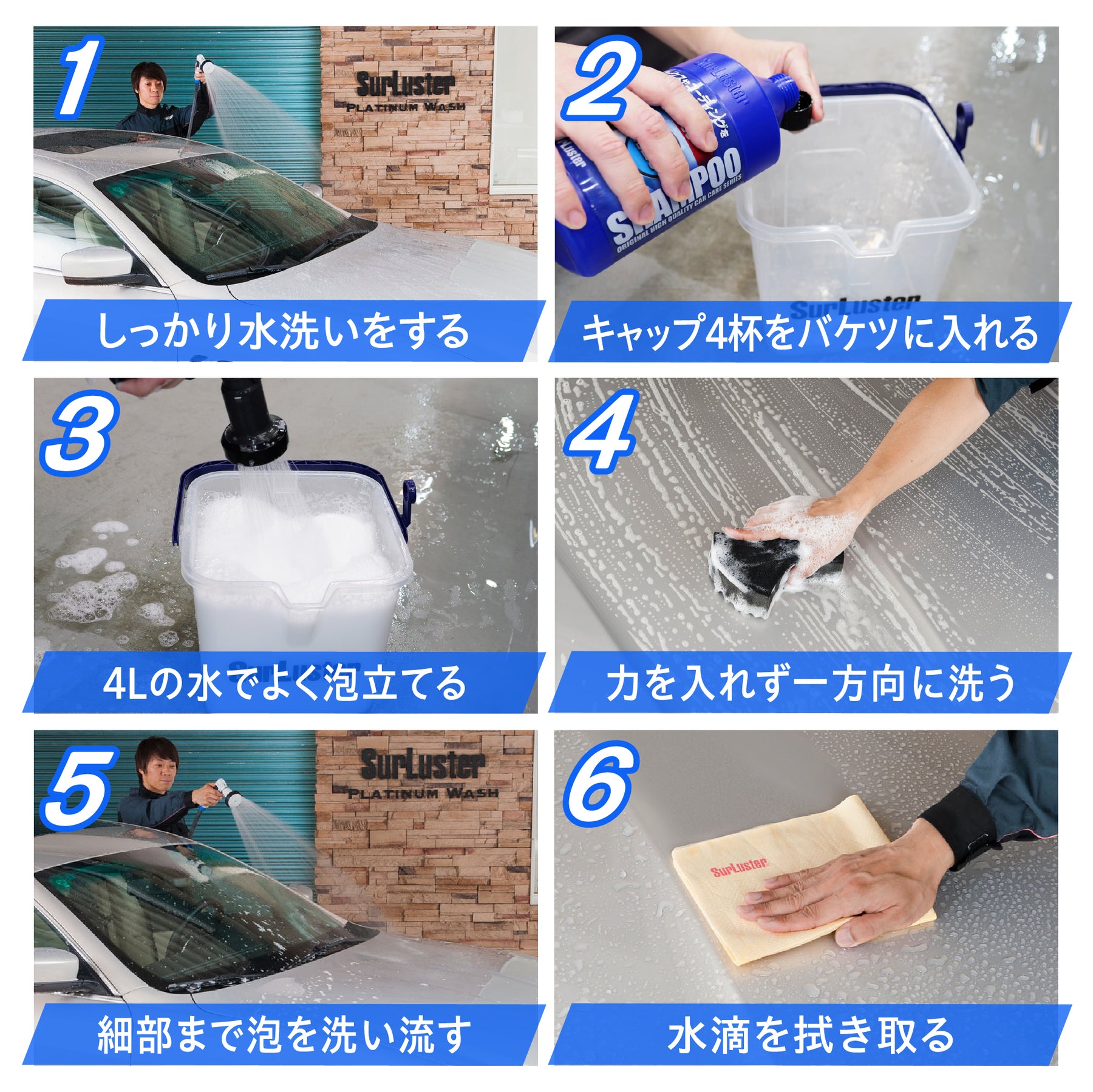③洗車用スポンジにシャンプーを含ませてからやさしくボディをこするように洗車して下さい。