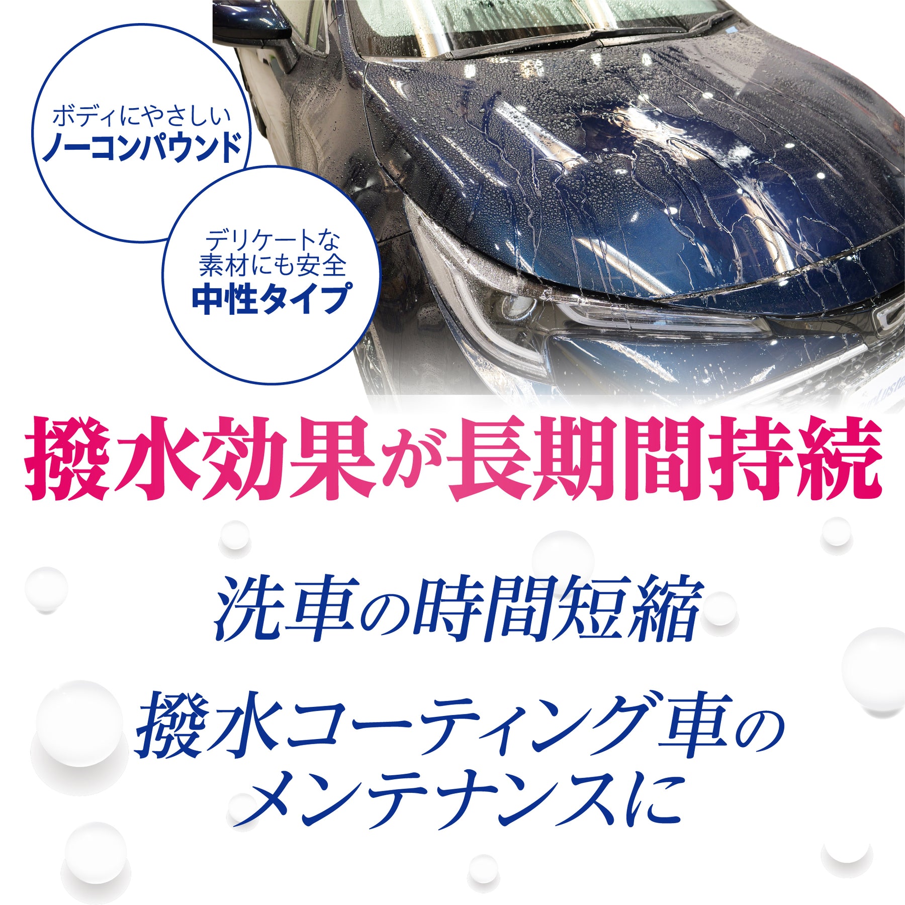 シャンプーの泡を流しはじめた瞬間からボディにほとばしる撥水パワーを発揮します。希釈タイプで豊かな泡立ちを実現!ボディに優しく、ホコリ汚れをしっかり包み込みやさしく落とします。ノーコンパウンドで全てのボディカラーに対応します。